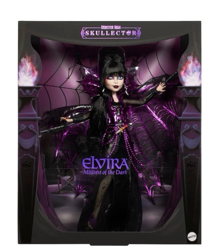 The product is a Mattel exclusive Monster High Skullector Elvira doll, set for release in 2025. This fashion doll is part of the popular Monster High franchise, known for its unique and stylish designs. The set includes the doll itself, making it a must-have for collectors and fans of the series. With its limited availability and exclusive nature, this presale item is sure to be a prized addition to any doll collection.